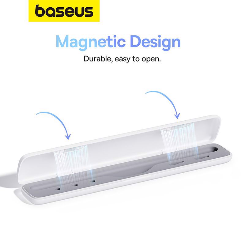 - Hộp đựng bút cảm ứng từ tính Baseus – nơi lưu trữ phụ kiện, có thể chứa đến 3 ngòi thay thế và 2 đầu bút, rãnh đựng bút lớn hơn. Tương thích với cả bút cảm ứng Baseus và bút chì Ap-ple.