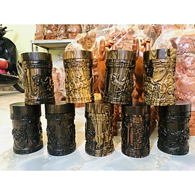 _ Hộp được trà chè được làm bằng chất liệu gỗ mun hoa tự nhiên 100% _ Kt cao 20 thân tròn 11cm _ Hộp đựng trà chè được tiện khắc phân phúc từ đầu