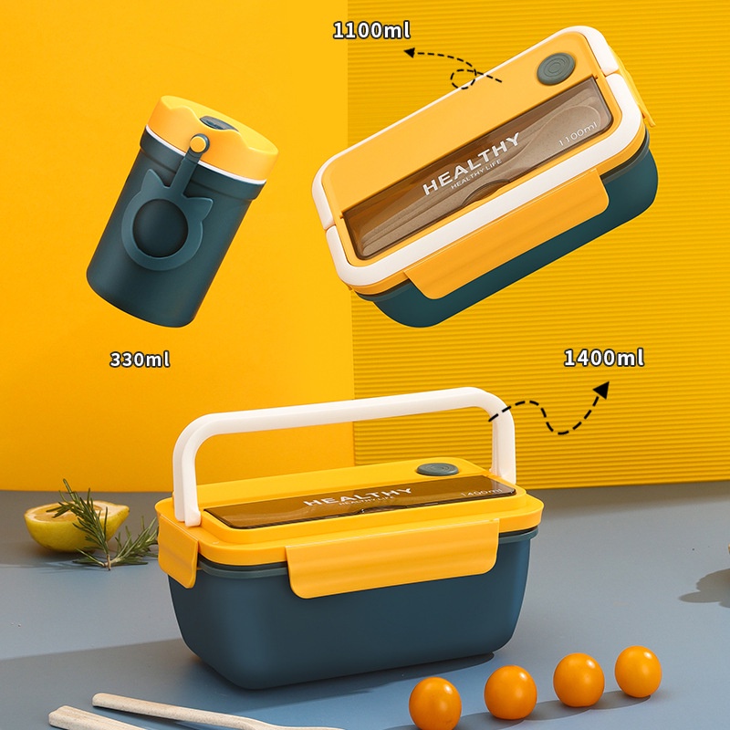 Hộp đựng cơm văn phòng HEALTHY an toàn sức khỏe sử dụng trong lò vi sóng kèm đũa muỗng - HÀNG CHÍNH HÃNG MINIIN
