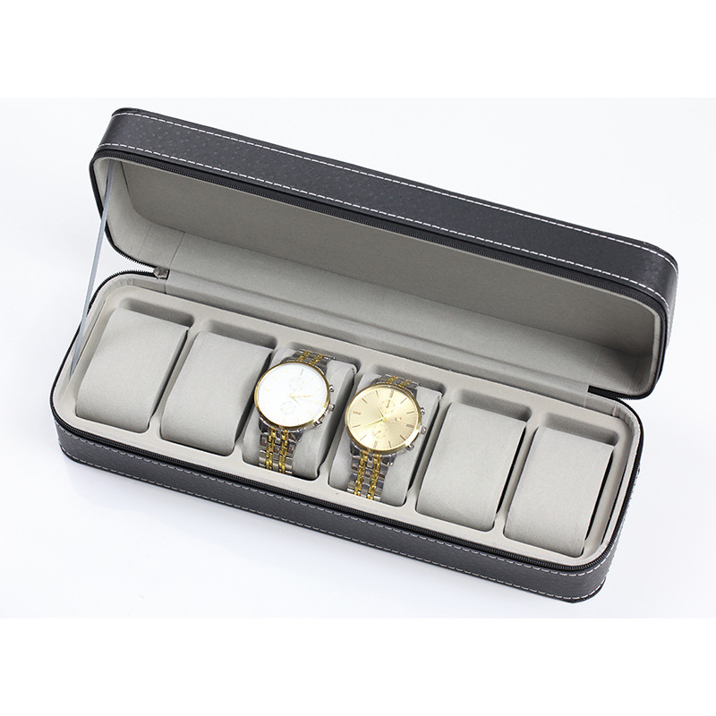 - Hộp Đựng Đồng Hồ 6 Ngăn SAIKE S606 Vỏ Da Có Khóa Kéo