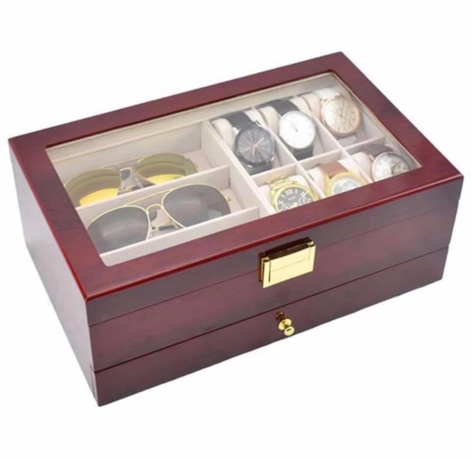 Hộp gỗ 2 tầng đựng 6 đồng hồ, 3 mắt kính và trang sức #hộp #hopdungdongho #hopdungtrangsuc #watch