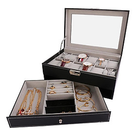 Hộp Đựng Đồng Hồ Và Trang Sức 2 Tầng - 33 x 20 x 13cm - Hệ thống, sắp xếp đồng hồ và trang sức hợp lý, không còn cảnh bừa bãi, thiếu ngăn nắp trong góc phụ kiện của bạn