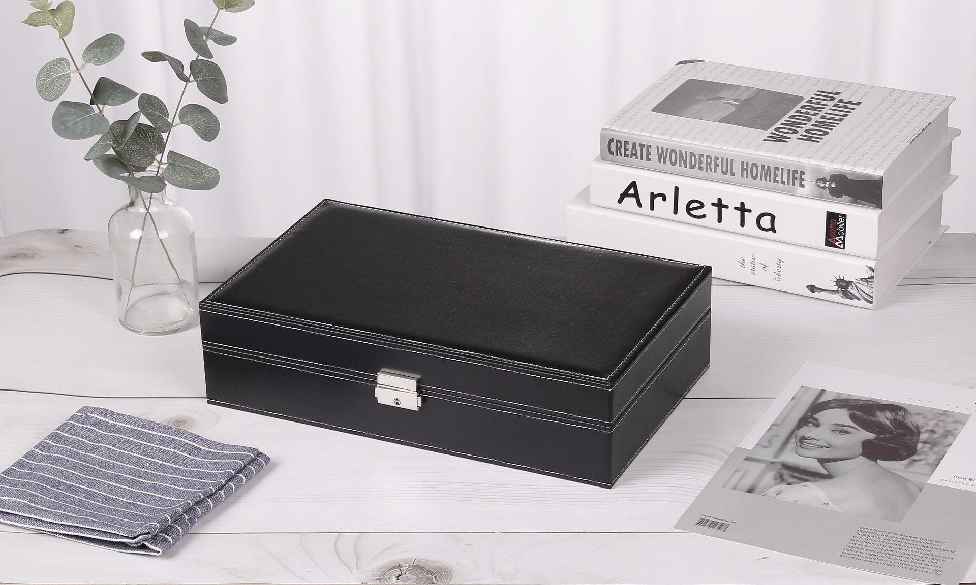 Hộp 2 tầng đựng đồng hồ và trang sức vỏ da carbon màu đen #hộp #hopdungdongho #hopdungtrangsuc