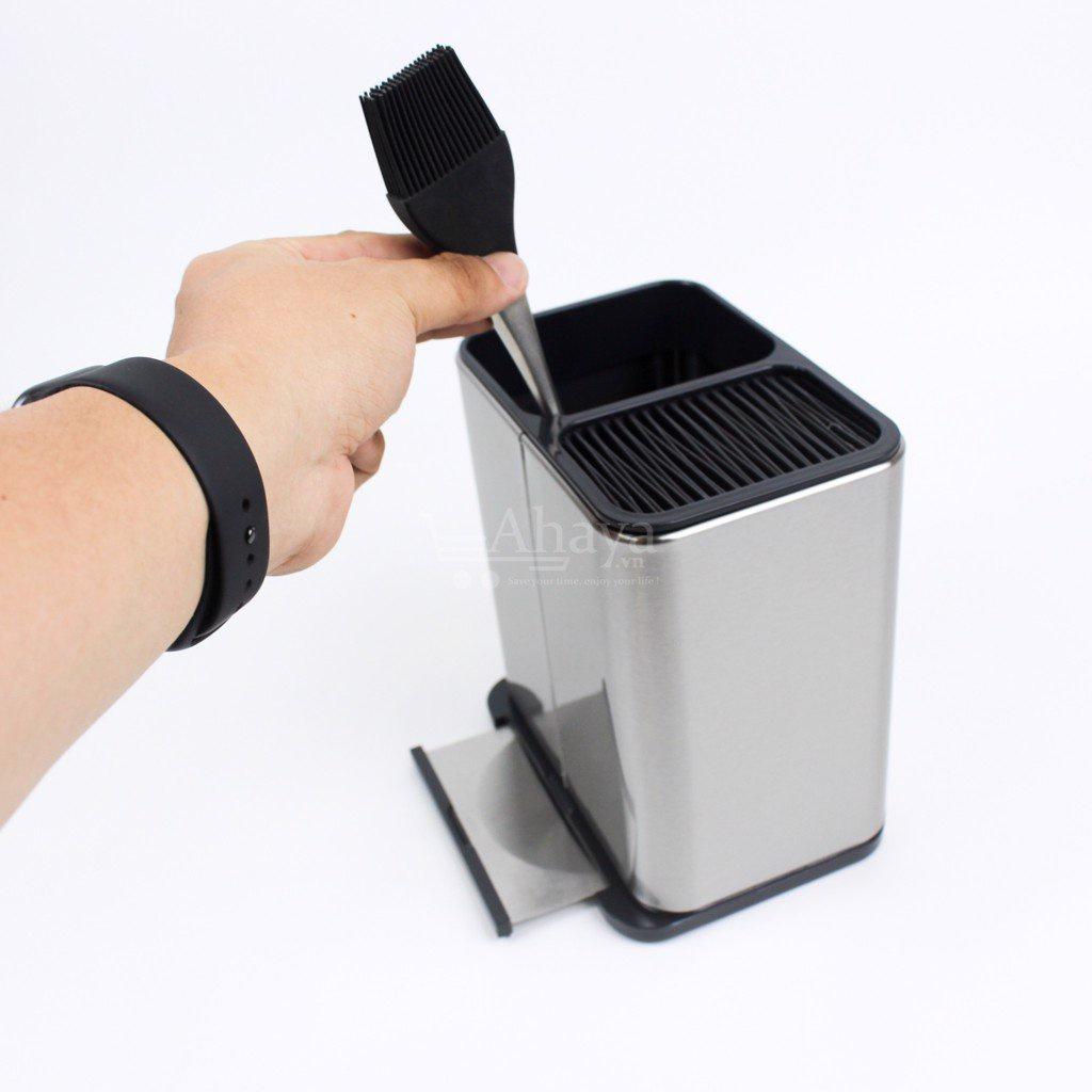 Giúp căn bếp thêm gọn gàng, ngăn nắp. Hộp đựng dụng cụ này được chia thành hai phần tiện lợi, một phần cung cấp không gian lưu trữ cho một loạt các dụng cụ nhà bếp khác nhau trong khi phần kia có một số khe cắm cho dao sắc.