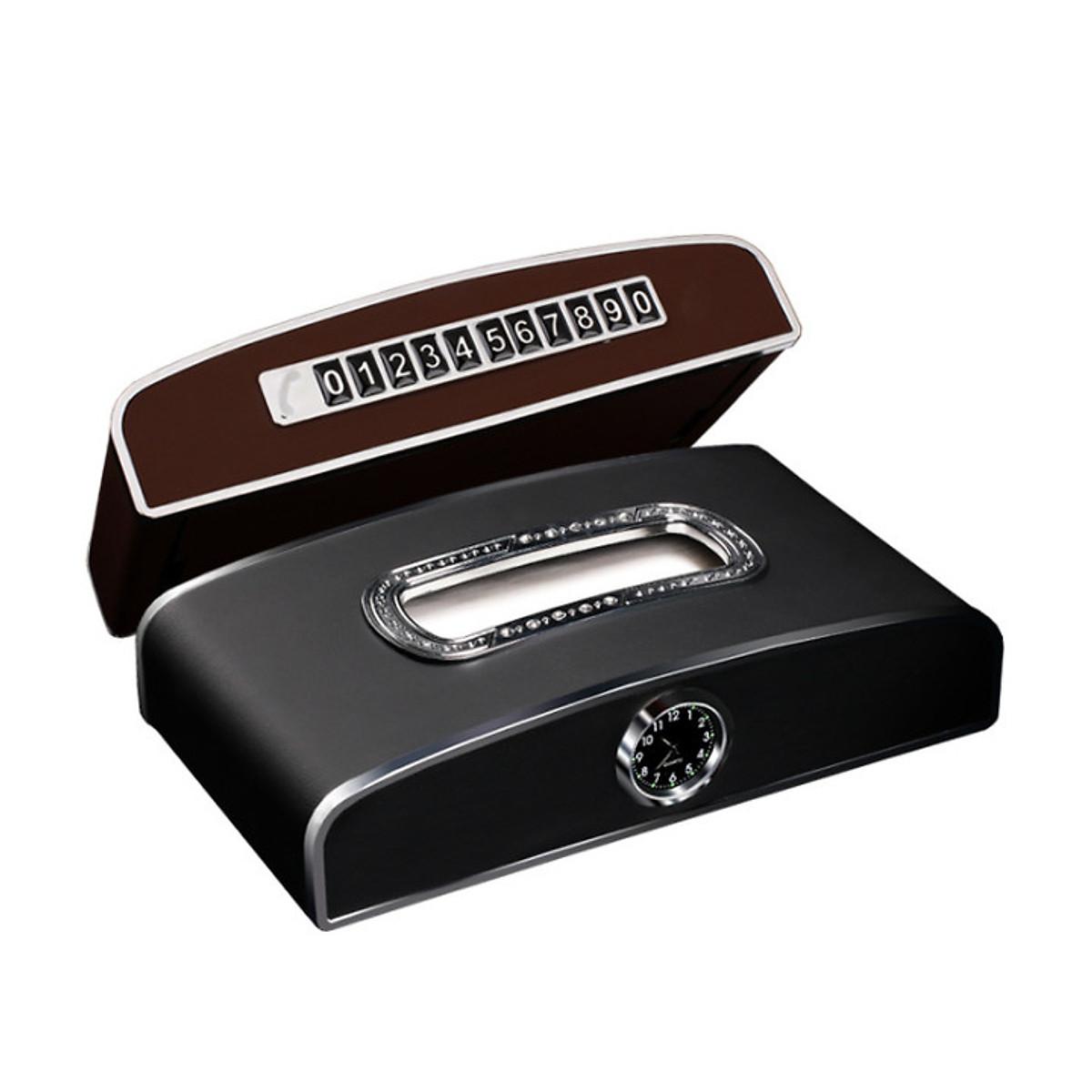Hộp đựng khăn giấy trên ô tô có đồng hồ và bảng số điện thoại cao cấp tại ThanhBinhAuto