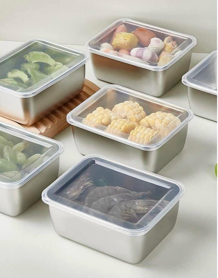Hộp Đựng Thực Phẩm Tủ Lạnh, Đồ Ăn Bằng Inox 304 Có Nắp Nhựa Kèm Theo Tiện Lợi