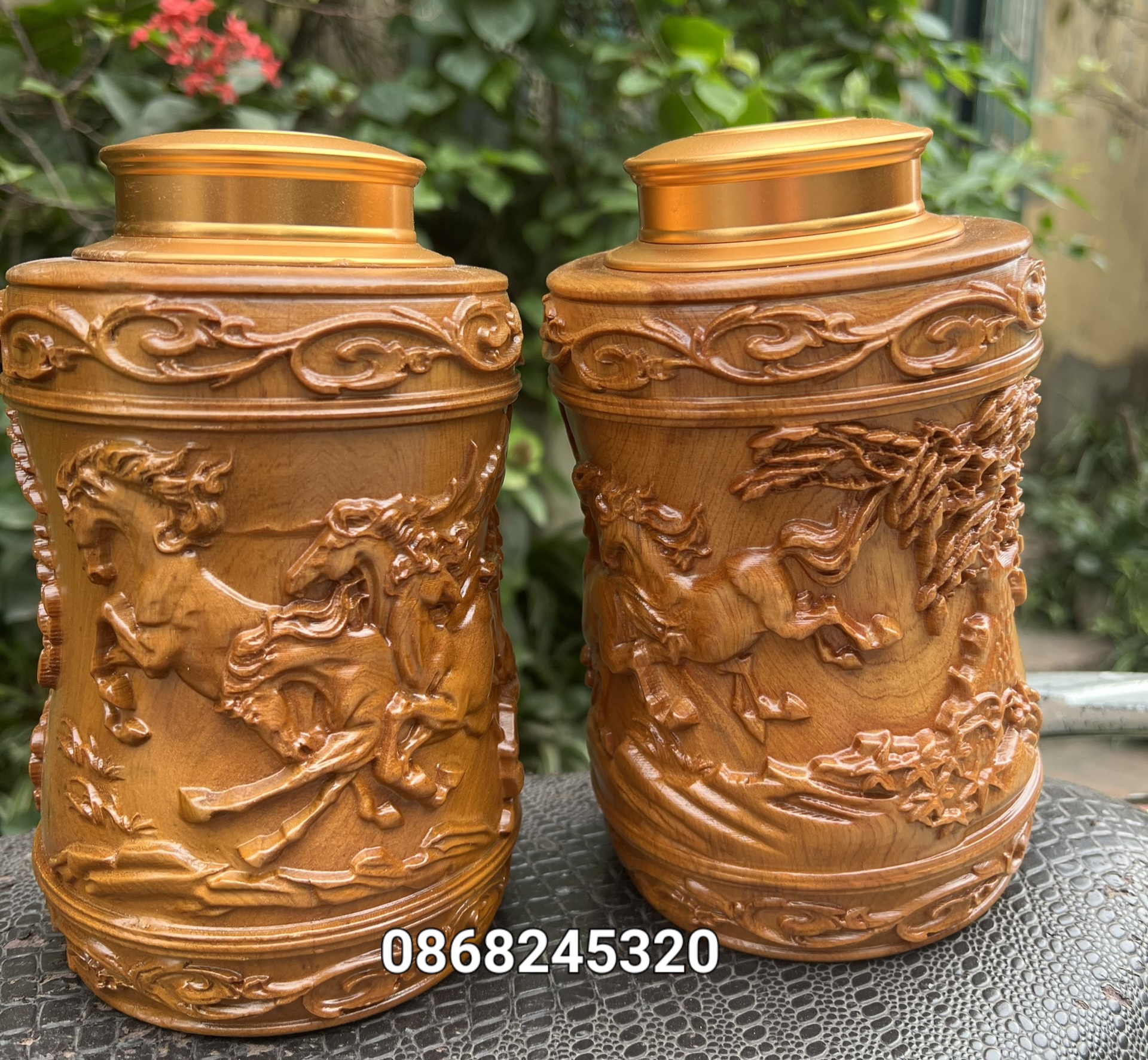 ✨Hộp đựng trà (chè) khắc bát mã bằng gỗ ngọc am thơm nức kt cao 20×12×12cm