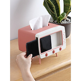 Thiết kế đẹp độc lạ hình dáng như chiếc tivi ngày xưa, mặt trước có chỗ để màn hình điện thoại, bên trong lại là hộp giấy ăn vô cùng tiện dụng, đặt trên bàn