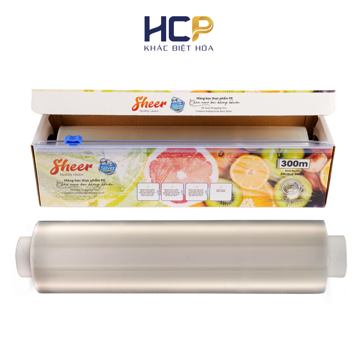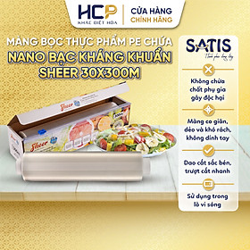 ✨Hộp Màng Bọc Thực Phẩm PE Kháng Khuẩn 30cmX300m SATIS Phủ Nano Bạc An Toàn Cho Sức Khỏe Dùng Được Cho Lò Vi Sóng