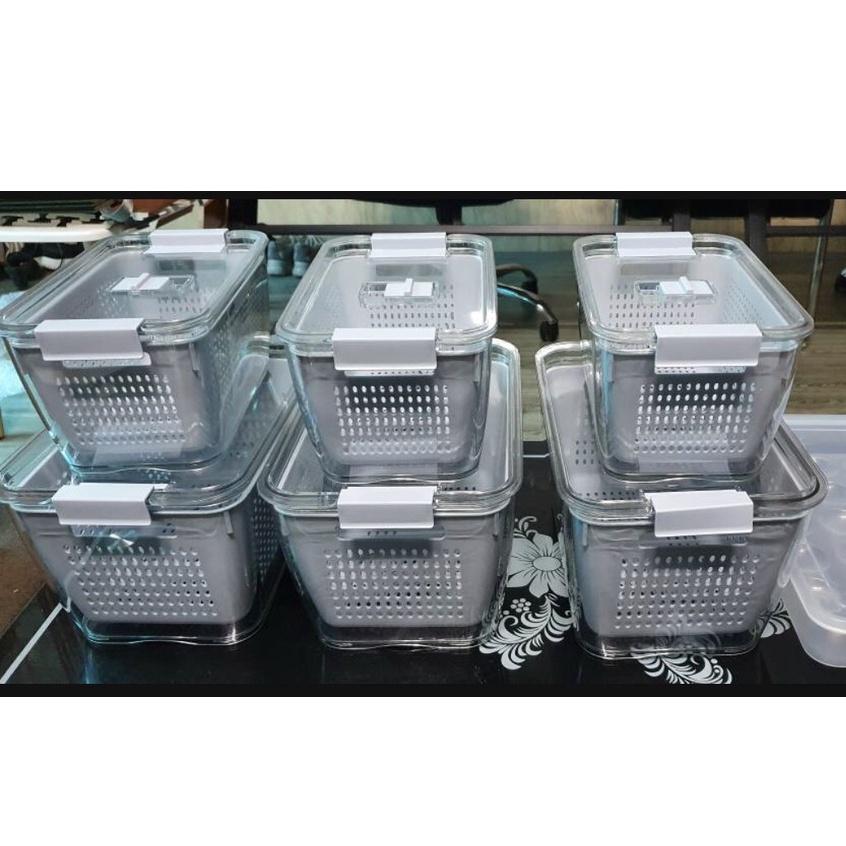 ✨Hộp Nhựa Đựng Thực Phẩm 2 lớp để Tủ Lạnh Có Lỗ Thoát Nước Khóa Thoát Khí Dễ Dàng Bảo Quản Rau Củ