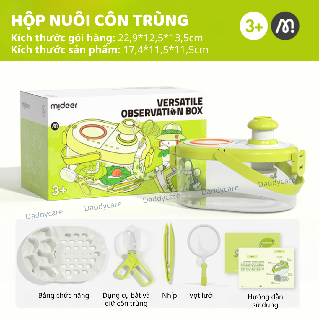 Mua tại TiktokHộp nuôi quan sát côn trùng Mideer insect box Hộp nuôi côn trùng Mideer giúp bé quan sát thế giới tự nhiên một cách sinh động! Với thiết kế đa chức năng, ống kính HD kép, góc nhìn 360 độ và các ngăn phân chia thông minh, hộp nuôi này cho phép bé tìm hiểu về côn trùng an toàn và thú vị. Khơi dậy niềm đam mê khoa học và khám phá ngay từ nhỏ! 10 Lý do ba mẹ nên chọn Hộp nuôi côn trùng Mideer Insect Box cho con?