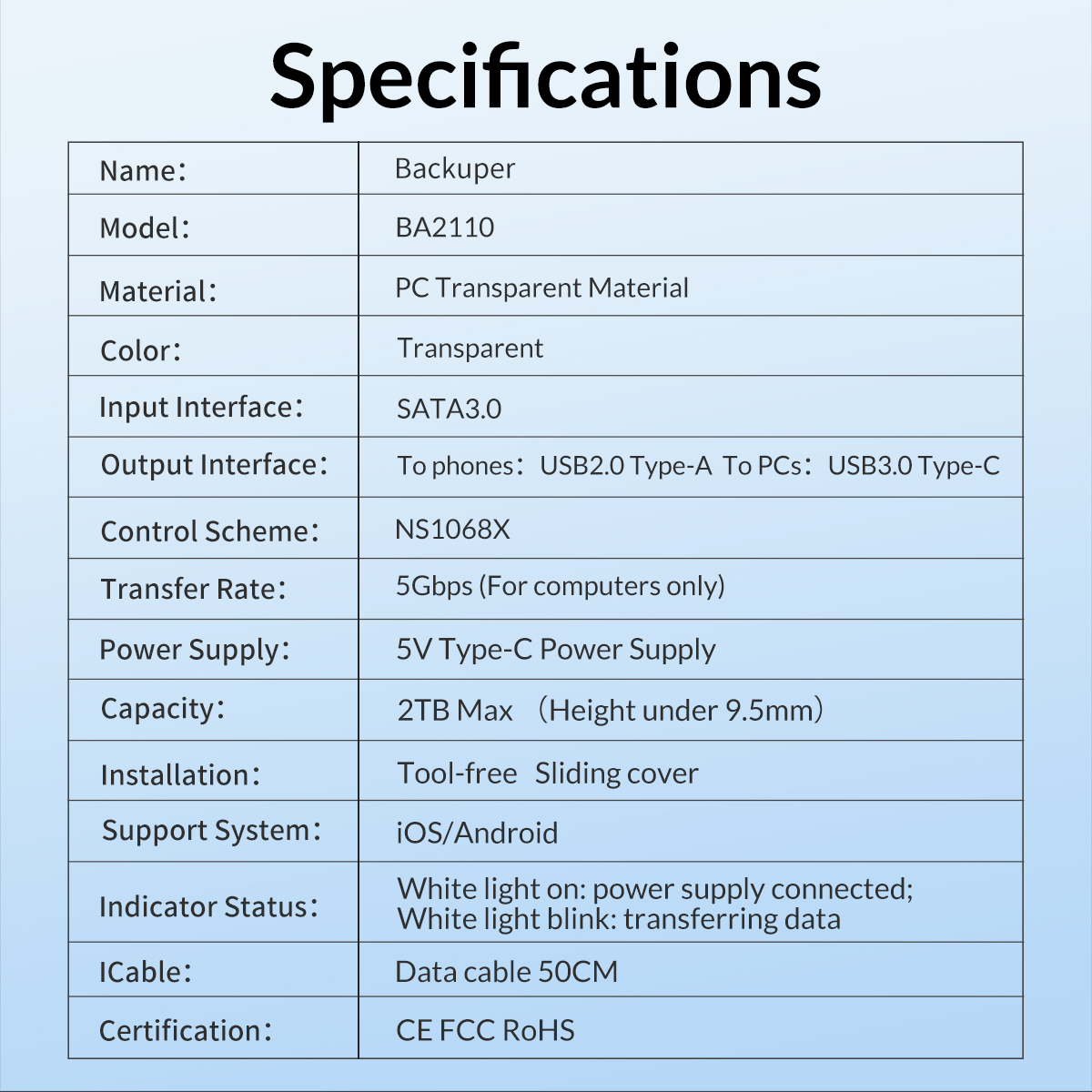 - Hộp ổ cứng Backuper 2.5" SSD/HDD SATA 3 USB 3.0