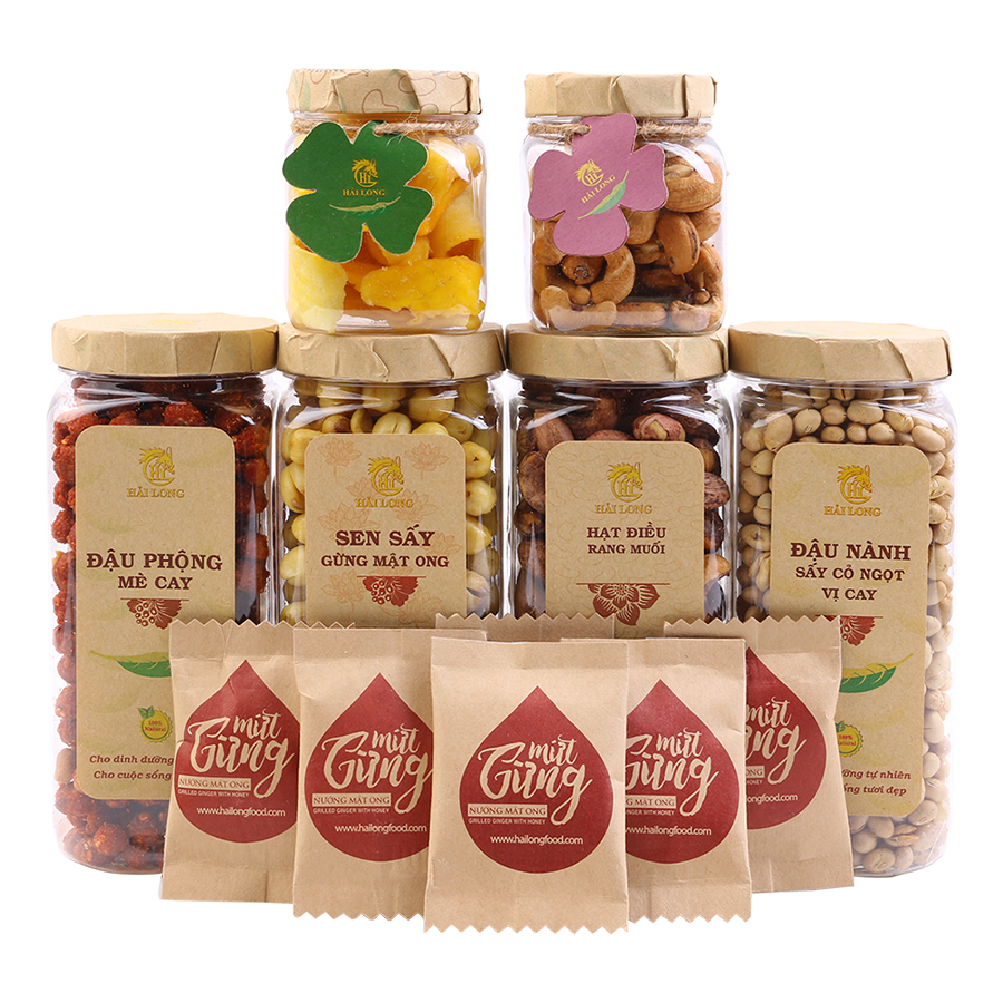 Hộp Quà Tết Thực Phẩm Cao Cấp Hải Long 05A các loại hạt và trái cây có vị ngon ngọt với những hương vị từ cay, chua cho đến ngọt, bùi đặc trưng cho hương