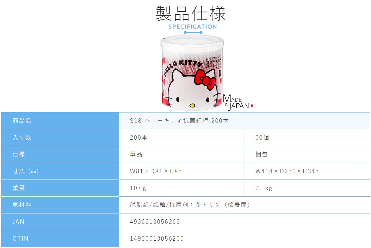Hộp 200 tăm bông kháng khuẩn Sanyo Hello Kitty 100% bông gòn tự nhiên mềm mại+ Sản phẩm được nhập khẩu trực tiếp từ thị trường Nhật Bản chính hãng 100%.+ Đảm bảo chất lượng, dịch vụ tốt nhất, hàng đ...