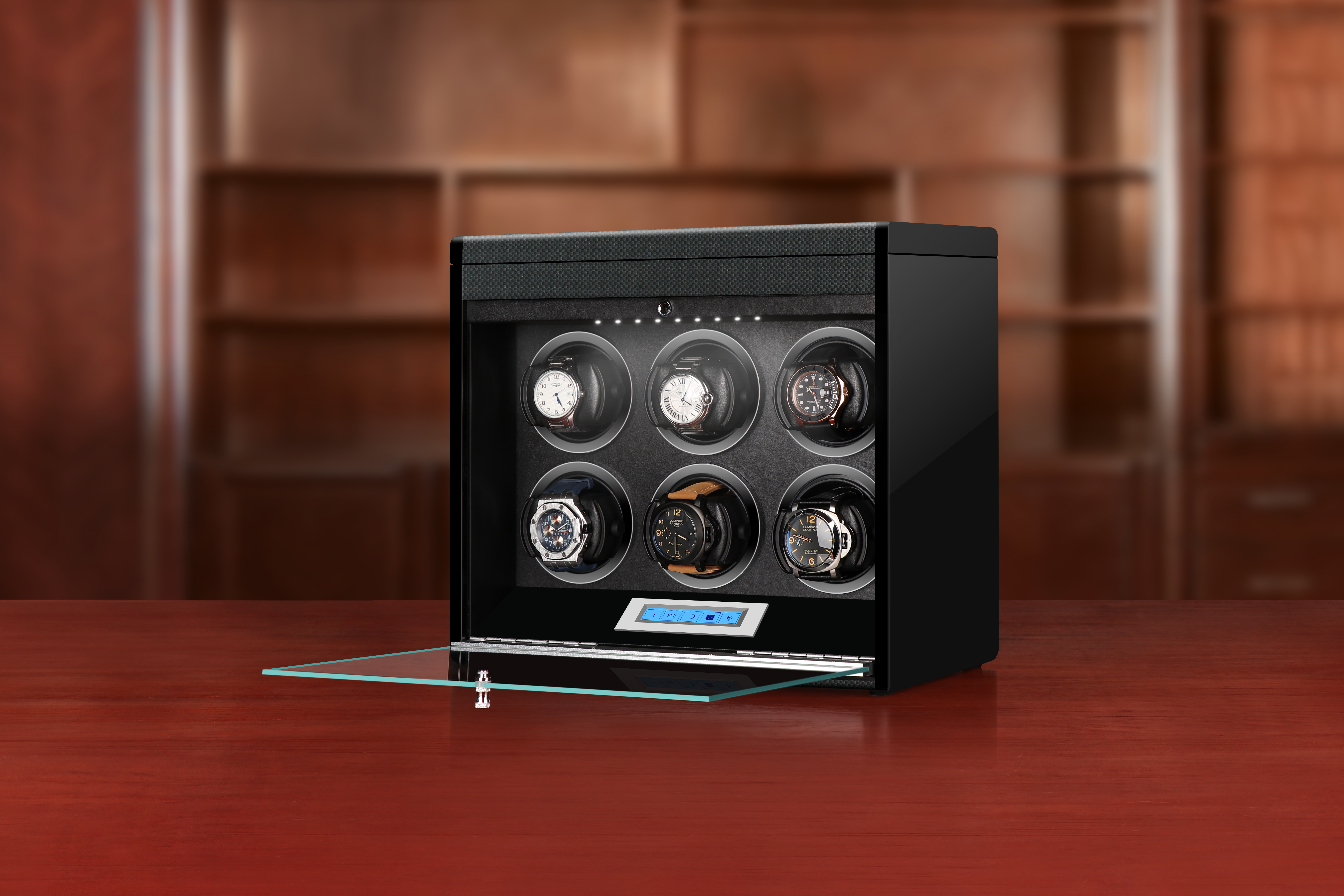 Mua tại Tiktok• Mã sản phẩm: DRT6 • Số lượng đồng hồ 06 xoay + khay trên để đồng hồ pin và phụ kiện • Kích thước: 33.51931cm (Dài x Rộng x Cao) • Trọng lượng: Thiết bị: 6.8kg / Đóng gói: 8.0 kg. • Màu sắc: ĐEN / VÂN GỖ ĐỎ • Chất liệu: Gỗ MDF mật độ cao chống ẩm mốc • Động cơ: Chính hãng DRIKLUX • Nút nguồn phụ hỗ trợ dừng xoay khi mở nắp. • Bảng LED điều khiển cảm ứng • Đèn Led chiếu sáng ổ xoay. • Có thể thiết lập riêng biệt cho từng ổ xoay. • Thương hiệu của ĐỨC – Nhà máy sản xuất tại Trung Quốc