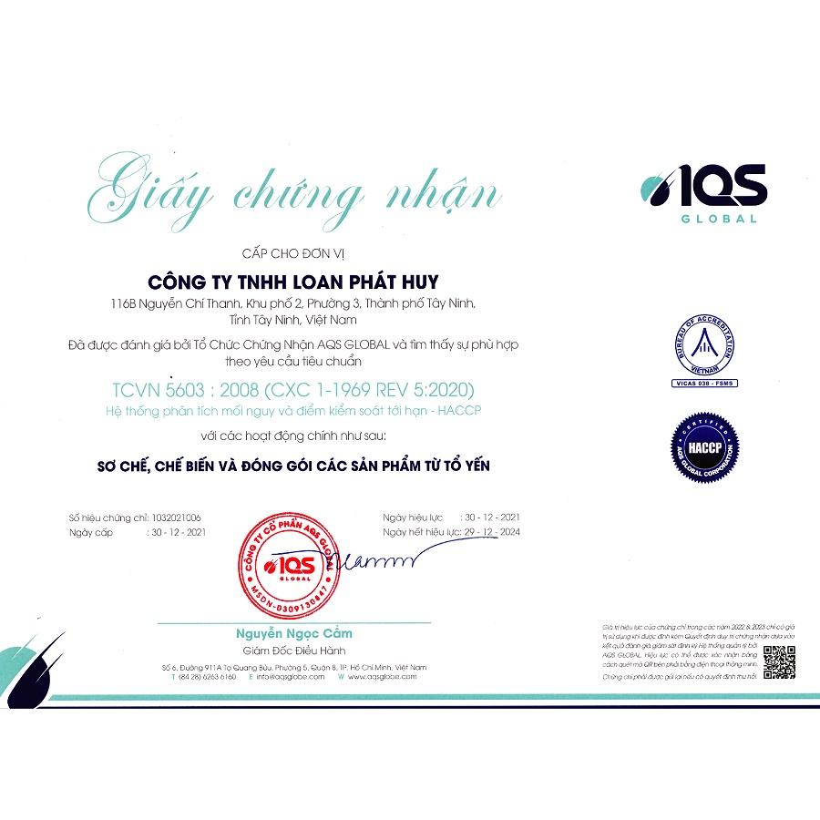 Tháng 12/ 2021 Quy trình sản xuất đạt chuẩn AQS Global HACCP.