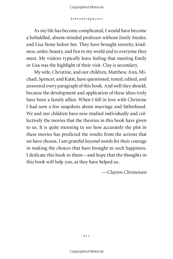 In this groundbreaking book, Christensen puts forth a series of questions: How can I be sure that I'll find satisfaction in my career? How can I be sure that my personal relationships become enduring sources of happiness? How can I avoid compromising my integrity-and stay out of jail? Using lessons from some of the world's greatest businesses, he provides incredible insights into these challenging questions.