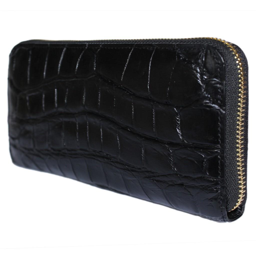 - Tên sản phẩm: HP3742 - Ví nữ da cá sấu Huy Hoàng 1 khóa nguyên con bụng màu đen