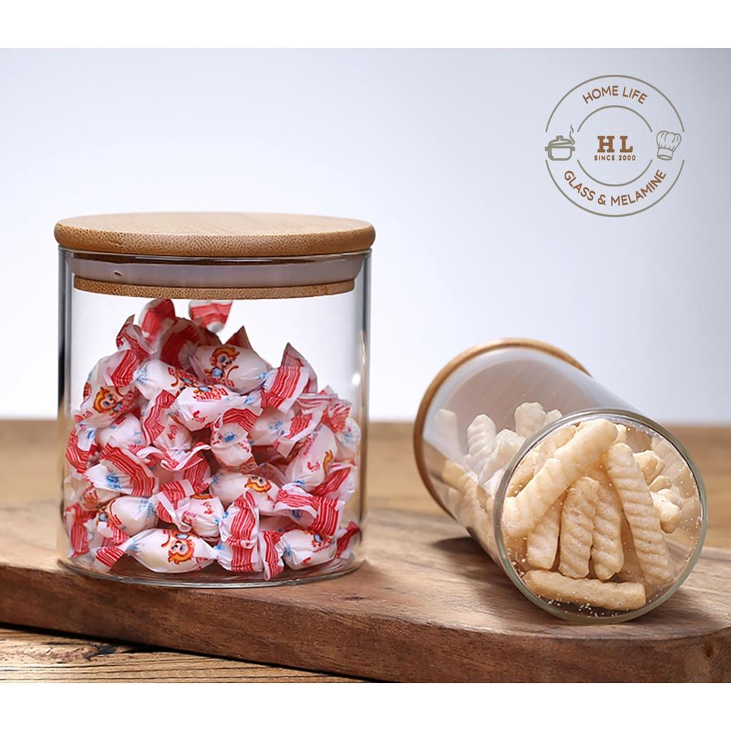 ✨Hũ Thủy Tinh Kín Hơi, Chống Tràn Đựng Bánh Kẹo Và Gia Vị Trang Trí | LỌ TRE TRÒN THỦY TINH NẮP GỖ TRE