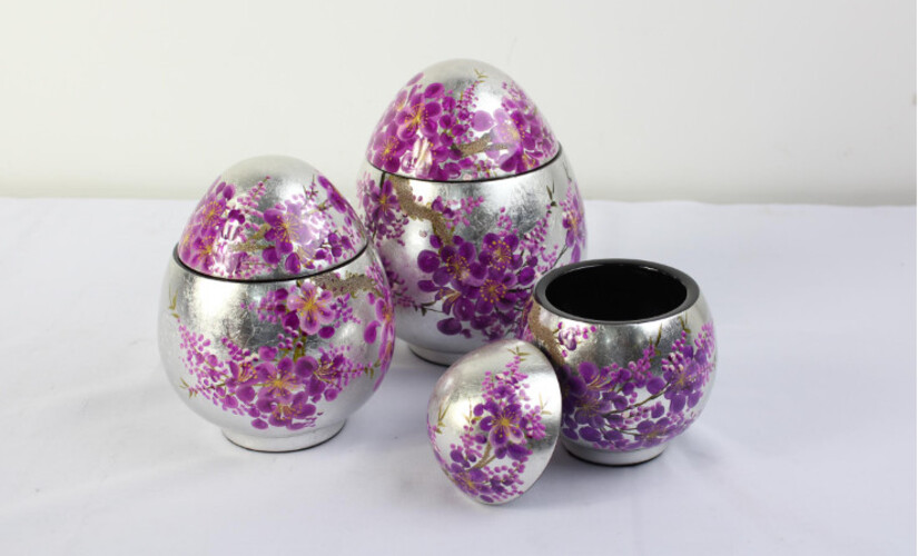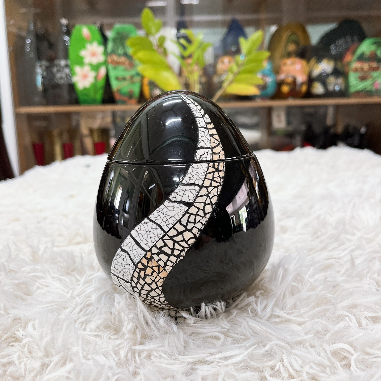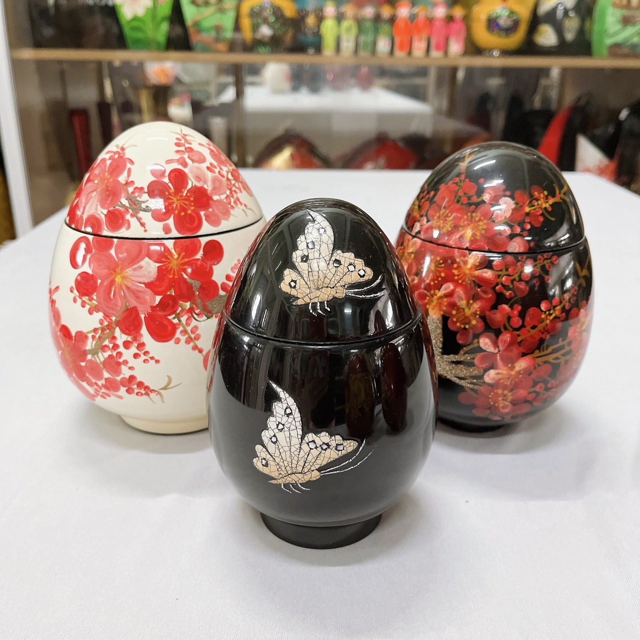Sản phẩm được làm từ cốt gỗ nguyên cây, mẫu mã đa dạng phong phú, từ cẩn trứng đến vẽ tay tỉ mỉ, họa tiết hoa văn thanh lịch, nhiều màu sắc đa dạng, bên ngoài phủ nhiều lớp sơn để tạo độ sáng bóng.