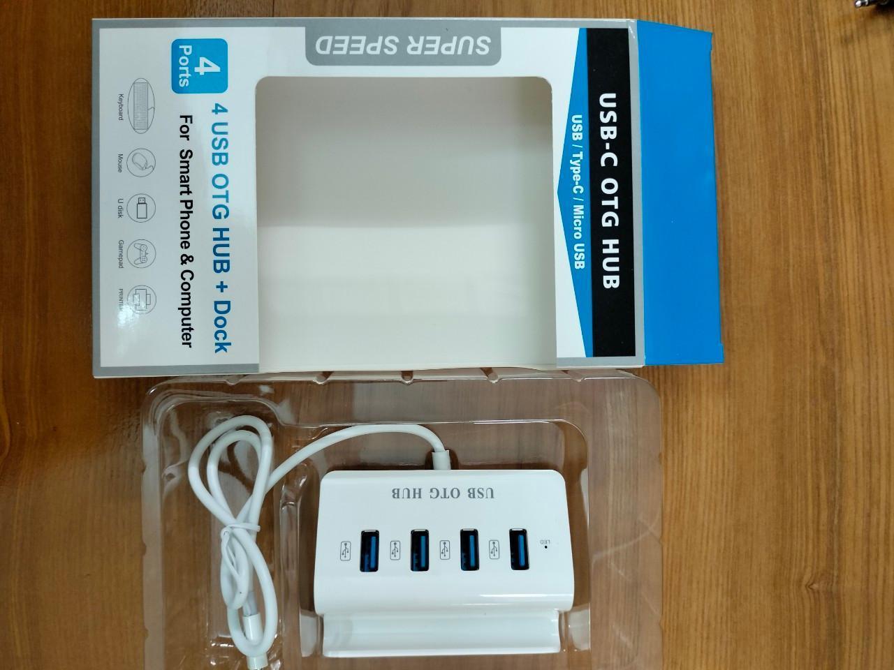 Mua tại TiktokHub OTG Chia 4 Cổng USB Đầu Type C Có Giá Đỡ Điện Thoại cao cấp Thông số: Loại: USB 4 cổng 3.0 OTG HUB Chất liệu: Nhựa Màu: trắng Cổng USB: 4 * USB 3.0 Đầu: Type C Đặc điểm nổi bật: Hoạt động với các máy tính và thiết bị thông minh mới nhất có cổng Type C. Thêm 4 cổng USB 3.0 vào thiết bị của bạn. Không cần trình điều khiển bên ngoài hoặc nguồn điện cần thiết để thiết lập. Plug & Play, Hot swappable. Hệ thống được hỗ trợ là Android / Window s 2000/2003 / ME / XP / Vist a / Window s 7/8/10 / OS 8.1 / 9.1 trở lên.