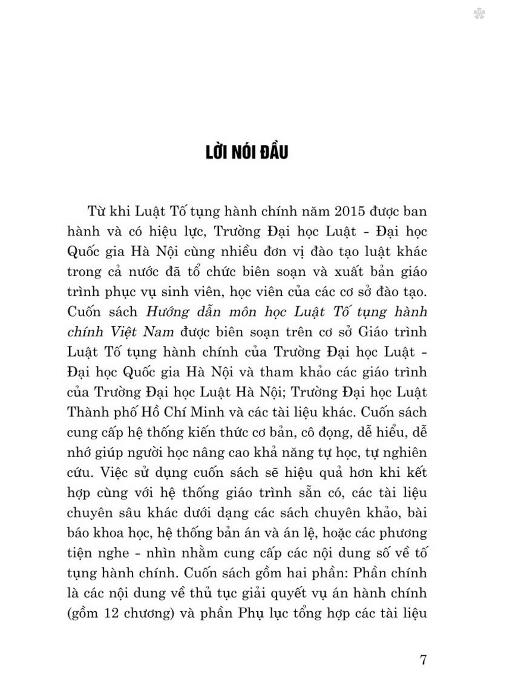 Nhằm hỗ trợ cho sinh viên, học viên các cơ sở đào tạo học tập, tìm hiểu, nghiên cứu các nội dung của môn học Luật Tố tụng hành chính Việt Nam một cách căn
