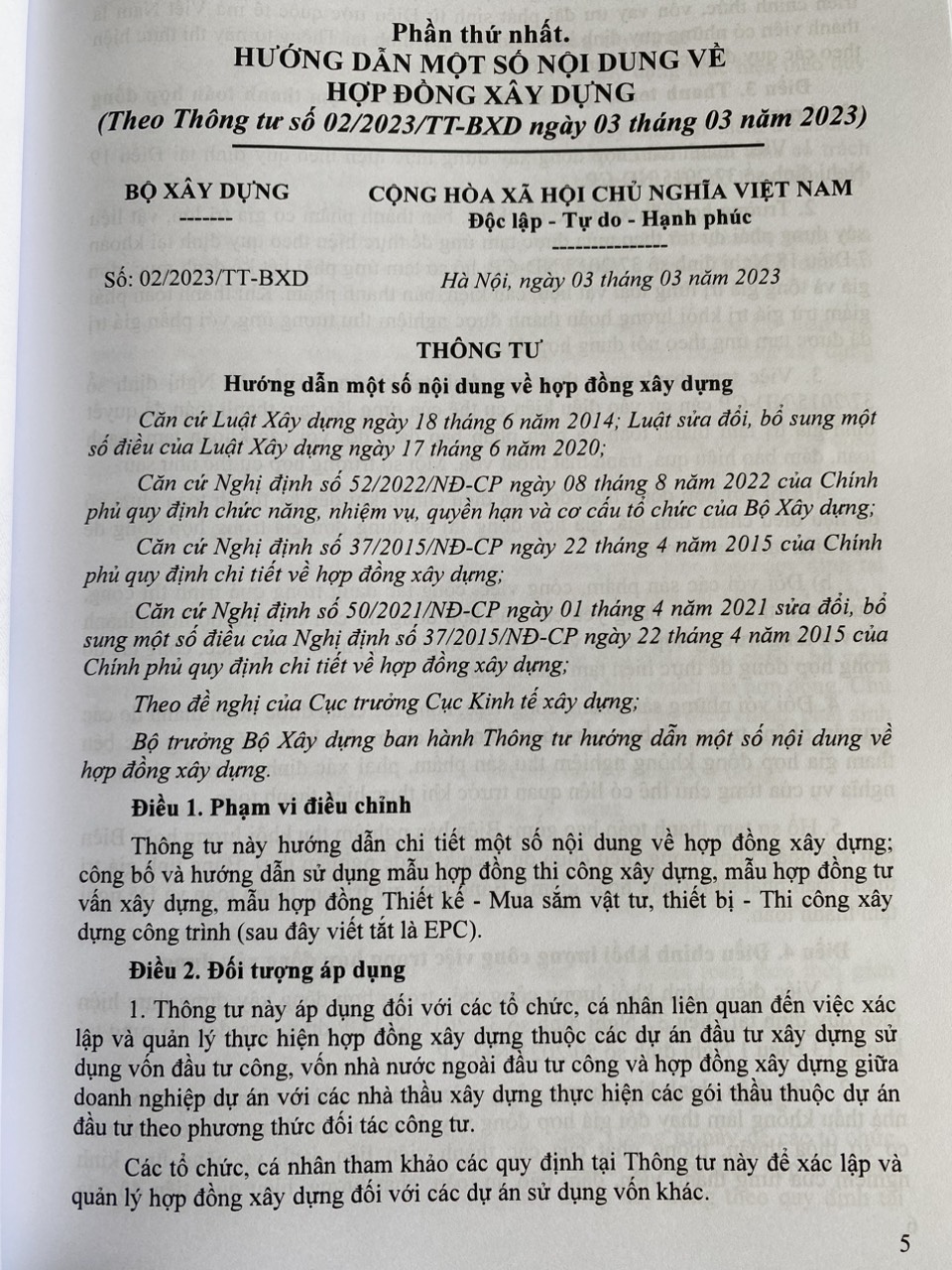 Phần thứ nhất. Hướng dẫn một số nội dung về hợp đồng xây dựng (theo thông tư số 02/2023/TT-BXD ngày 03 tháng 03 năm 2023)