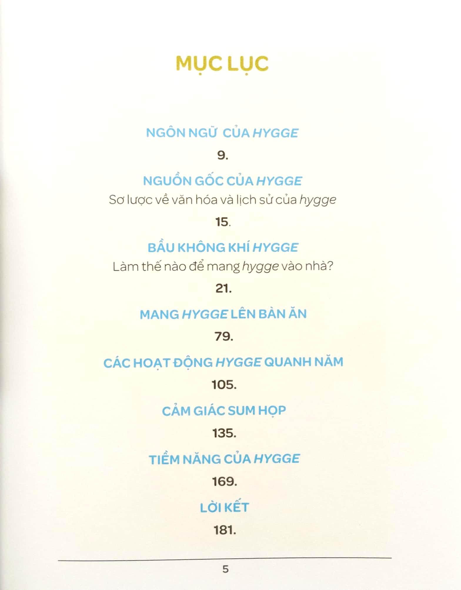 Chẳng có định nghĩa chung, thống nhất nhưng sau toàn bộ nội dung tác phẩm, người đọc sẽ cảm nhận được tinh thần của Hygge và tự chọn được cách Hygge cho mình. Như lời của Anne Glad, chuyên gia hàng đầu thế giới về lối sống, có thể hygge không phải là đáp án cho mọi câu hỏi lớn trong cuộc sống, nhưng chắc chắn hygge là một lời mời gọi chúng ta suy nghĩ về cuộc sống và hạnh phúc dưới một góc nhìn rộng hơn. Điều gì là quan trọng đối với chúng ta? Chúng ta cần làm việc nhiều đến mức nào? Và chúng ta cần gì để hạnh phúc? Hygge là lời mời gọi tận hưởng những thứ nhỏ bé trong cuộc sống, bởi vì thật ra đó chính là những điều to lớn.
