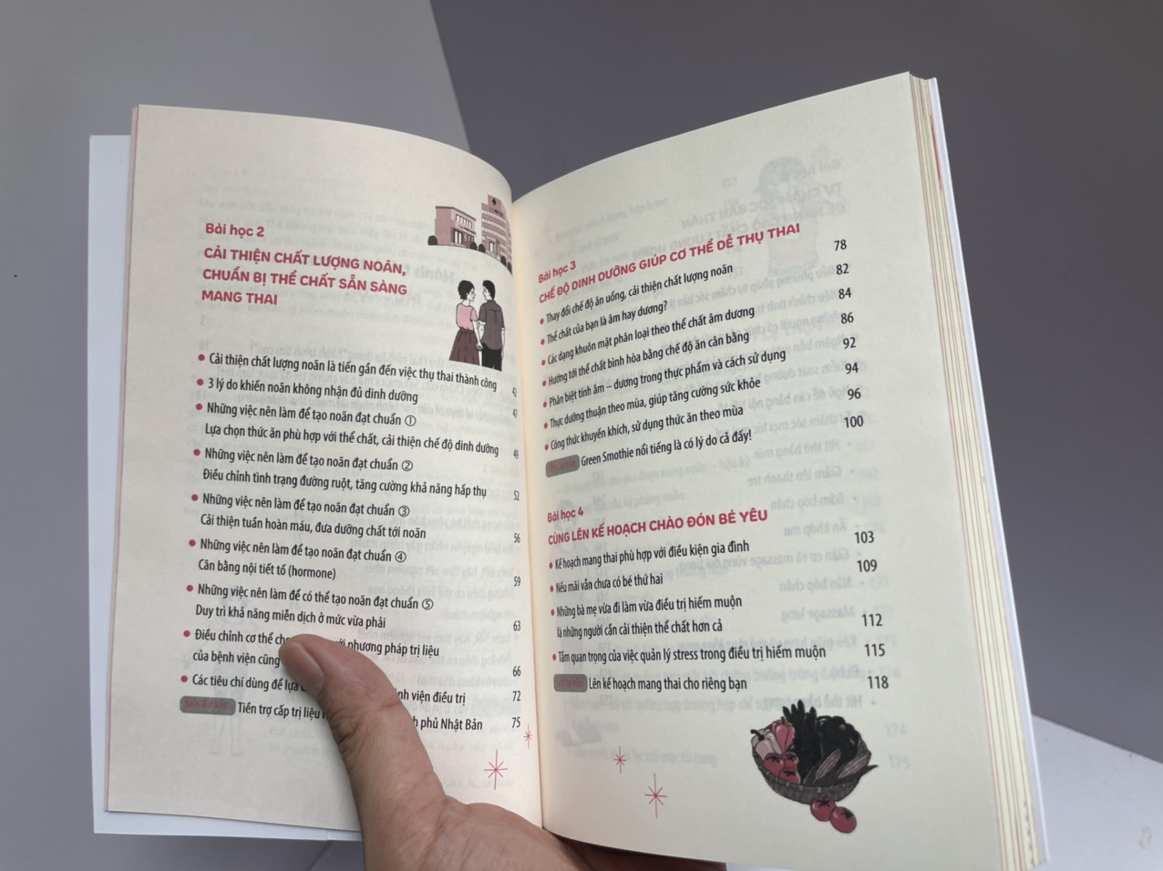 Trong cuốn sách này, tác giả Sekimura – một chuyên gia, người sáng lập ra viện châm cứu dành cho những bệnh nhân hiếm muộn tại Nhật Bản – cho rằng, nguyên nhân dẫn tới việc phụ nữ khó thụ thai một phần là do chất lượng noãn. Để cải thiện chất lượng noãn, tăng cường sức khỏe thể chất, người phụ nữ cần có những phương pháp hợp lý, từ dinh dưỡng đến các đi.ề ị y khoa cần thiết. Nội dung của sách này sẽ dành nhiều trang để nói về chế độ dinh dưỡng và cách tự chăm sóc bản thân hướng đến mục tiêu đó. Trong đó, người bệnh cần hiểu rõ thể chất của bản thân thông qua các xét nghiệm y khoa, chăm sóc dinh dưỡng, xoa bóp bấm huyệt và nhiều biện pháp khác.