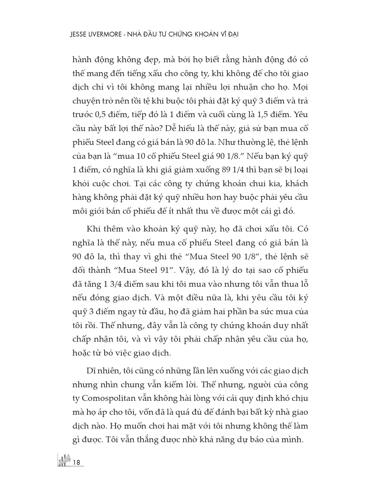 Cuốn sách “Jesse Livermore - Nhà đầu tư chứng khoán vĩ đại” lần đầu tiên được xuất bản vào năm 1923, đến ngày nay vẫn còn nguyên giá trị bất chấp sự thay đổi không ngừng của thị trường, với sự ra đời của nhiều phương pháp giao dịch hiện đại và sự hỗ trợ của công nghệ vào các kỹ thuật phân tích. Cuốn sách là cuộc đời và sự nghiệp của Jesse Livermore được tiểu thuyết hóa bởi Edwin Lefèvre, với những chi tiết và giọng kể chân thật như chính Livermore ghi chép lại. Rất nhiều nhà đầu tư và đầu cơ thuộc các thế hệ khác nhau đều thừa nhận những bài học họ rút ra được từ cuốn sách thậm chí còn nhiều hơn từ kinh nghiệm hoạt động thị trường.