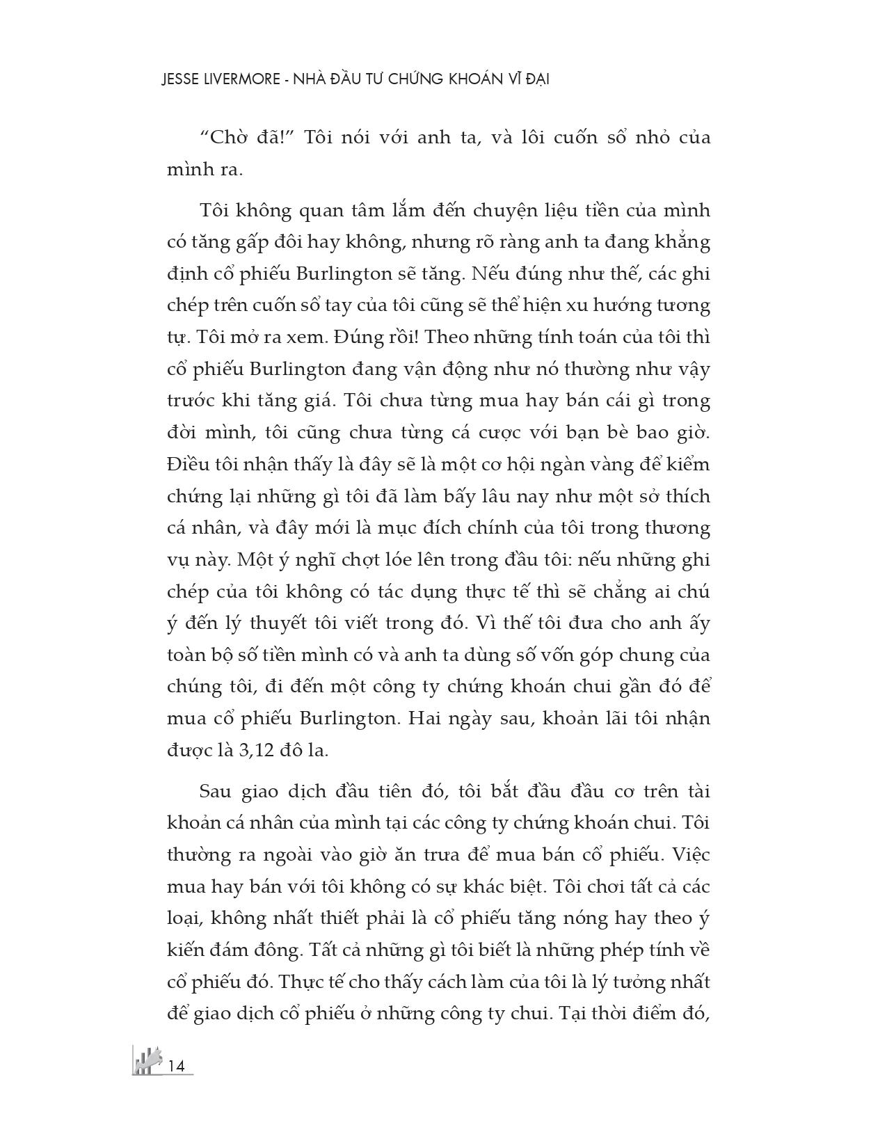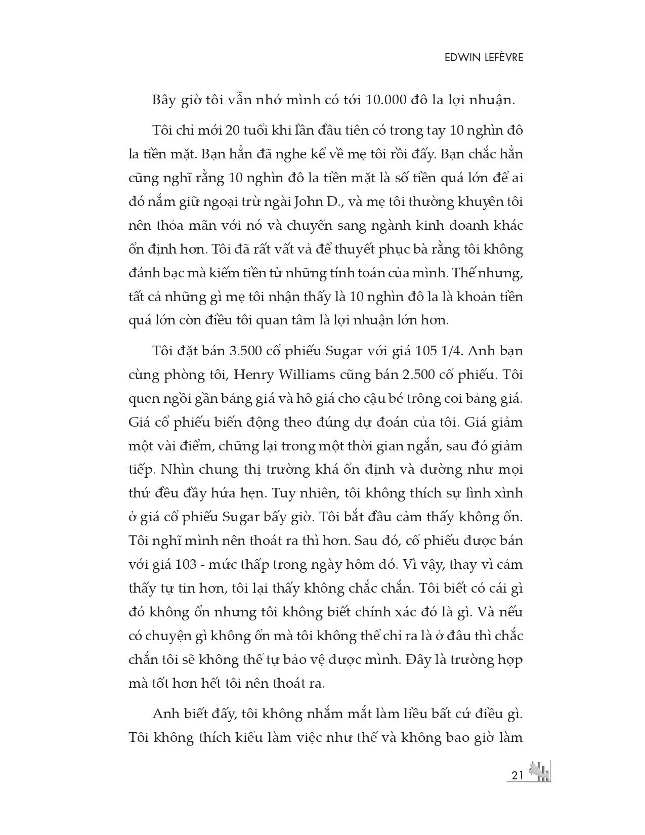 Cuốn sách kinh điển này vẽ nên bức chân dung hoàn chỉnh nhất của Jesse Livermore, từ cậu bé ghi bảng ở Boston đến nhà đầu cơ vĩ đại nhất phố Wall. Hơn 20 chương sách kể lại hành trình của Livermore để trở thành tiếng nói có ảnh hưởng nhất trên thị trường chứng khoán Mỹ vào thời của ông.