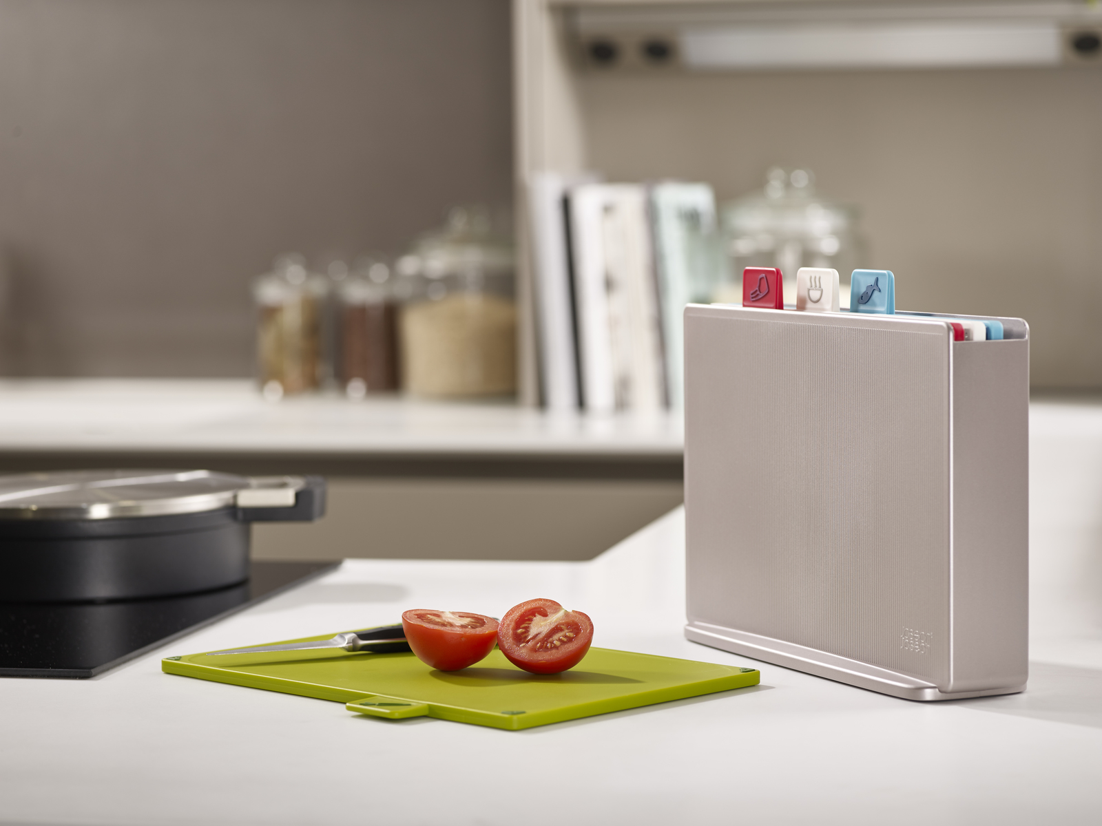 * THÔNG TIN CHI TIẾT SẢN PHẨM - Dòng sản phẩm Folio tiếp tục xu hướng màu xanh lá cây, bốn chiếc thớt có mã màu này đi kèm với một hộp đựng có đường