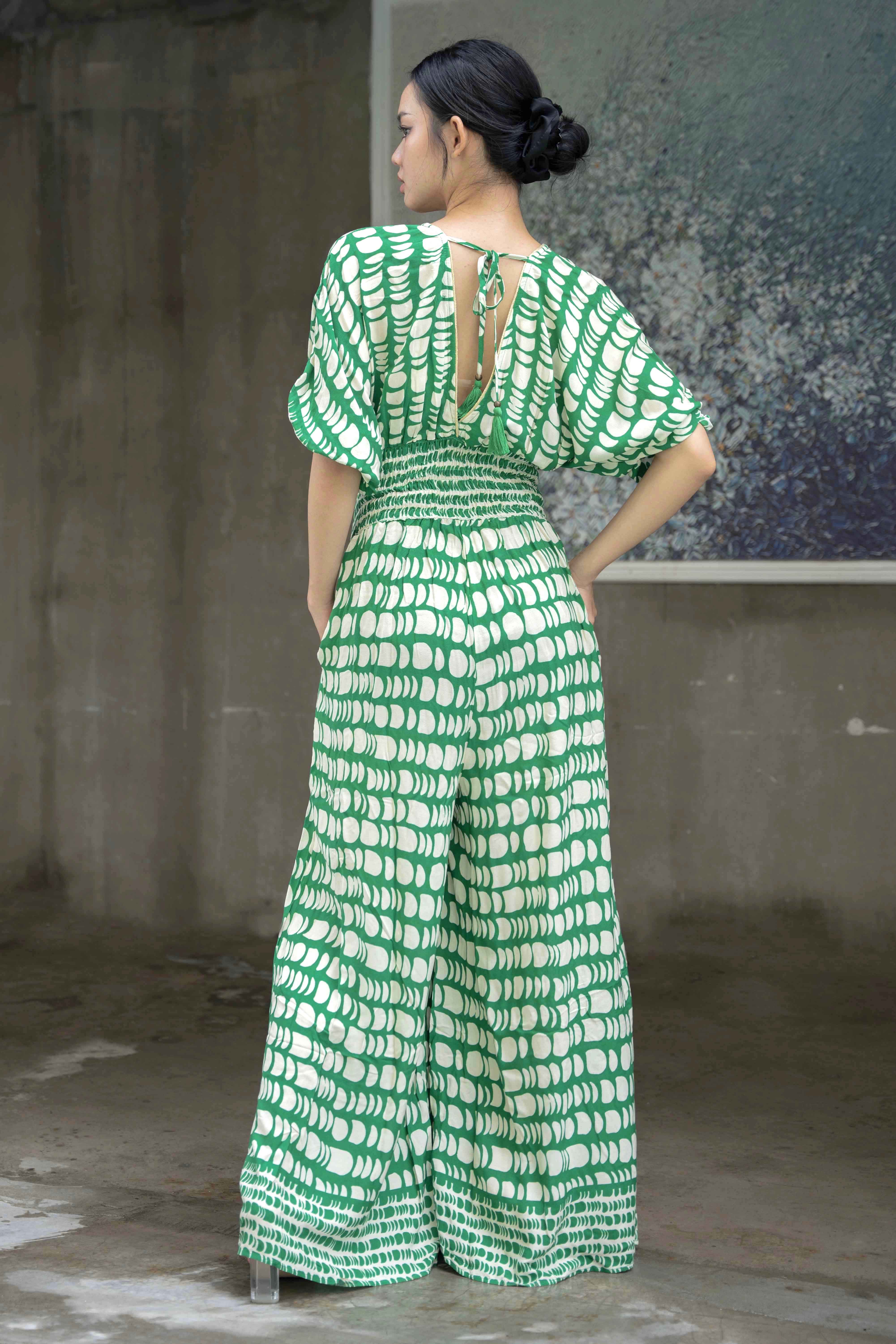 JUMPSUIT SUÔNG THẮT EO HOẠ TIẾT ĐAI EO CỔ V CARDINA CAO CẤP - GIÁ CỰC ƯU ĐÃI - MUA NGAY KẺO HẾT