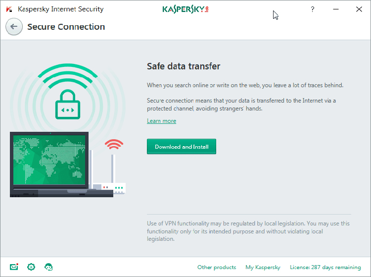 Xin lưu ý rằng bạn có thể bảo vệ 200 MB lưu lượng truy cập mỗi ngày, mỗi thiết bị - hoặc 300 MB mỗi ngày cho mỗi thiết bị nếu bạn đăng ký dịch vụ vào tài khoản My Kaspersky của mình. Dịch vụ sẽ tự động kết nối bạn với một máy chủ mà nhanh và gần với lãnh thổ mà bạn đang ở. Lưu lượng không giới hạn và tùy chọn để chọn lãnh thổ của máy chủ mà bạn kết nối sẽ tốn một khoản phí bổ sung.