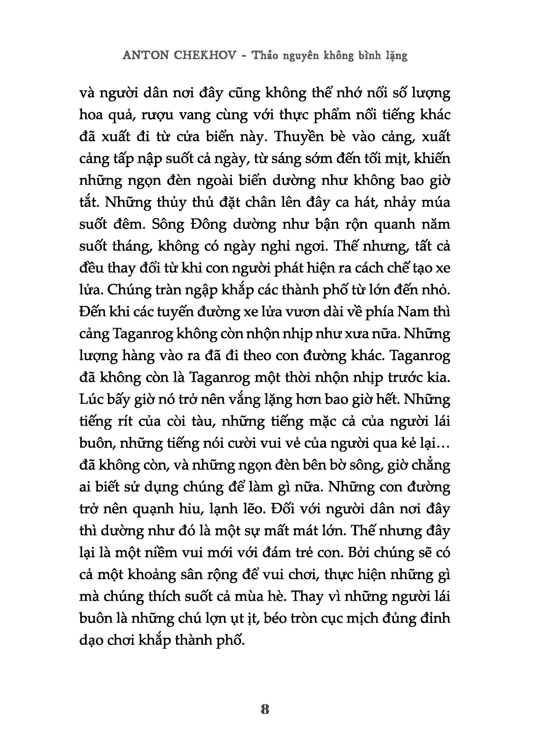 Nằm trong bộ sách Kể chuyện cuộc đời các thiên tài, Anton Chekhov – Thảo nguyên không bình lặng là câu chuyện viết kể về cuộc đời và sự nghiệp của một nhà văn, nhà viết kịch có tầm ảnh hưởng bậc nhất trong nền văn học nước Nga nói riêng, và nền văn học toàn thế giới nói chung, Anton Pavlovich Chekhov (Sê-khốp). Ông mang trong mình tình yêu thương con người sâu sắc, sẵn sàng hi sinh bản thân vì những tình cảm nhân đạo cao quý. Cuộc đời thăng trầm của ông được xem là tấm gương lao động nghệ thuật không biết mệt mỏi.