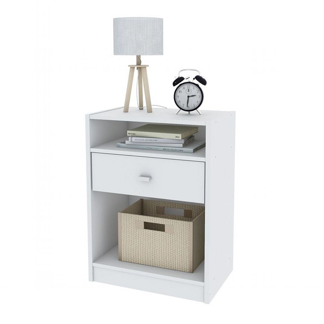 - Kệ tủ đầu giường hình vuông có hộc kéo - Chất liệu: ván gỗ HMR (viết tắt của High Moisture Resistence) lõi xanh chống ẩm, chống thấm nước phủ melamine, phun sơn trắng bóng
