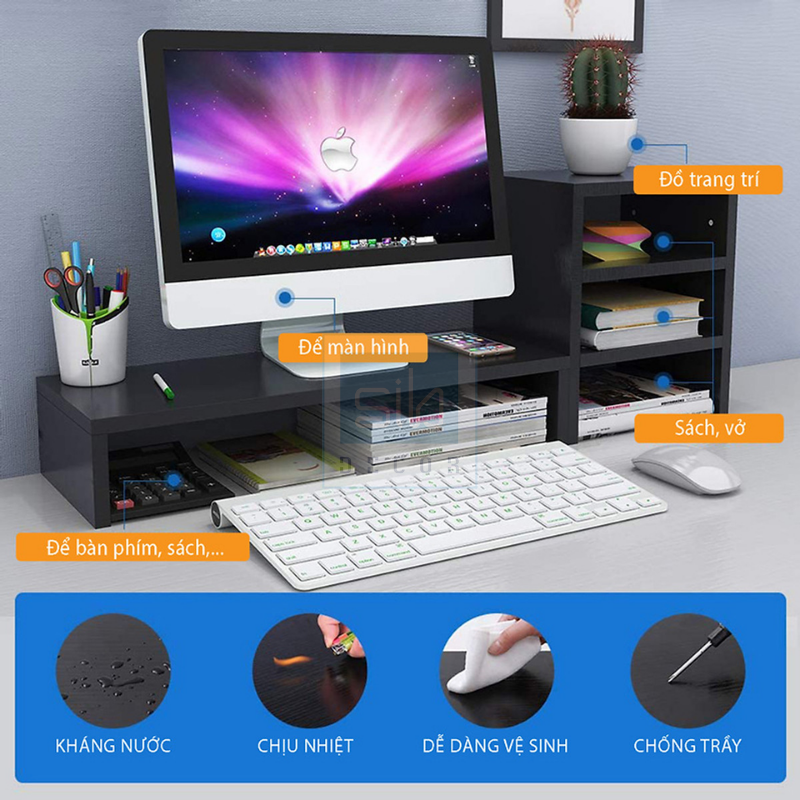 - Đa năng: Giá đỡ màn hình có thể hỗ trợ PC, Laptop của bạn và lưu trữ giấy tờ và các vật dụng văn phòng khác bên dưới, cung cấp cho bạn không gian làm việc lớn hơn và gọn gàng hơn.