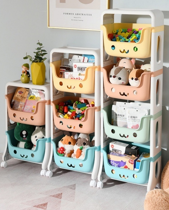 ✨Kệ đựng đồ chơi cho bé rèn tính gọn gàng đồ bỉm sữa đồ dùng trẻ em 3-4 tầng đa năng có bánh xe