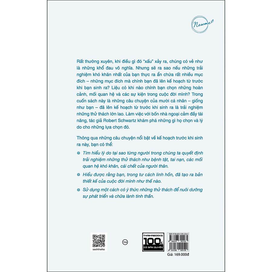 Trong cuốn sách Kế hoạch linh hồn: khám phá ý nghĩa cuộc sống mà bạn đã lên kế hoạch từ trước khi sinh ra , tác giả Robert Schwartz đã tiếp cận vấn đề dựa trên những kiến giải từ góc độ khoa học tâm linh thông những câu chuyện cuộc đời của những người mà ông quen biết. Trên phương diện này ông đặt ra vấn đề: Liệu có hay không việc cuộc xây dựng kế hoạch cuộc đời của mỗi người trước khi sinh ra, và nếu điều đó là có thật thì bản thân mỗi người cảm thấy như thế nào, và bằng cách nào để có thể thoát ra khỏi những ám ảnh về những khó khăn, bất hạnh đó. Ông đã tìm đến các nhà hướng dẫn tâm linh để lắng nghe và tìm kiếm câu trả lời. Và điều mà Robert Schwartz nhấn mạnh ở đây chính là bản thân mỗi người là một món quà của cuộc sống, vậy nên chúng ta hãy trân trọng bản thân, dù cuộc đời có gập ghềnh, có khó khăn hay bất hạnh thì hãy mạnh mẽ đón nhận nó bằng năng lượng tích cực và lan toả tình yêu từ trái tim mình đến với những người xung quanh. Đó chính là cách bạn sống tích cực và chữa lành mọi đau khổ, bất hạnh trên thế giới.