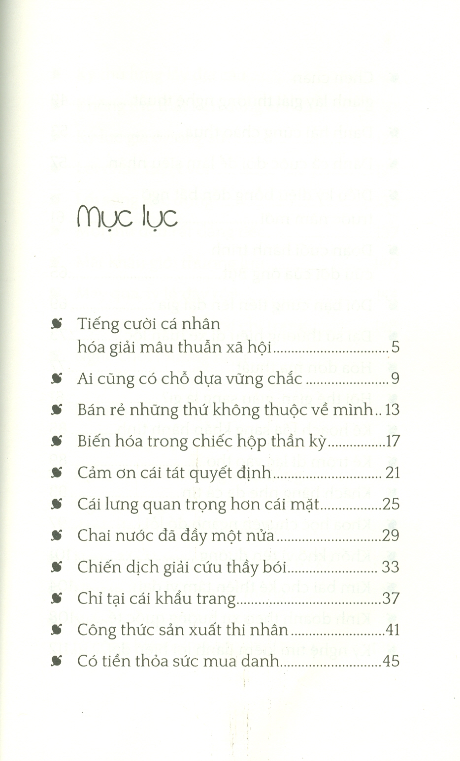 Cuốn sách giúp bạn đọc thư giãn sau những giờ làm việc mệt mỏi. Cuốn sách giúp bạn đọc thư giãn sau những giờ làm việc mệt mỏi. Trong cuộc sống hàng ngày của chúng ta, "một nụ cười bằng 10 thang thu.ốc bổ". Nụ cười có thể đem đến niềm vui và sự bình yên. Nụ cười cũng đem lại sự ấm áp và thấu hiểu. Nhà phát hành: ndbooks Nhà xuất bản: Nhà xuất bản Lao động Tác giả: Mai Hoa Số trang: 152