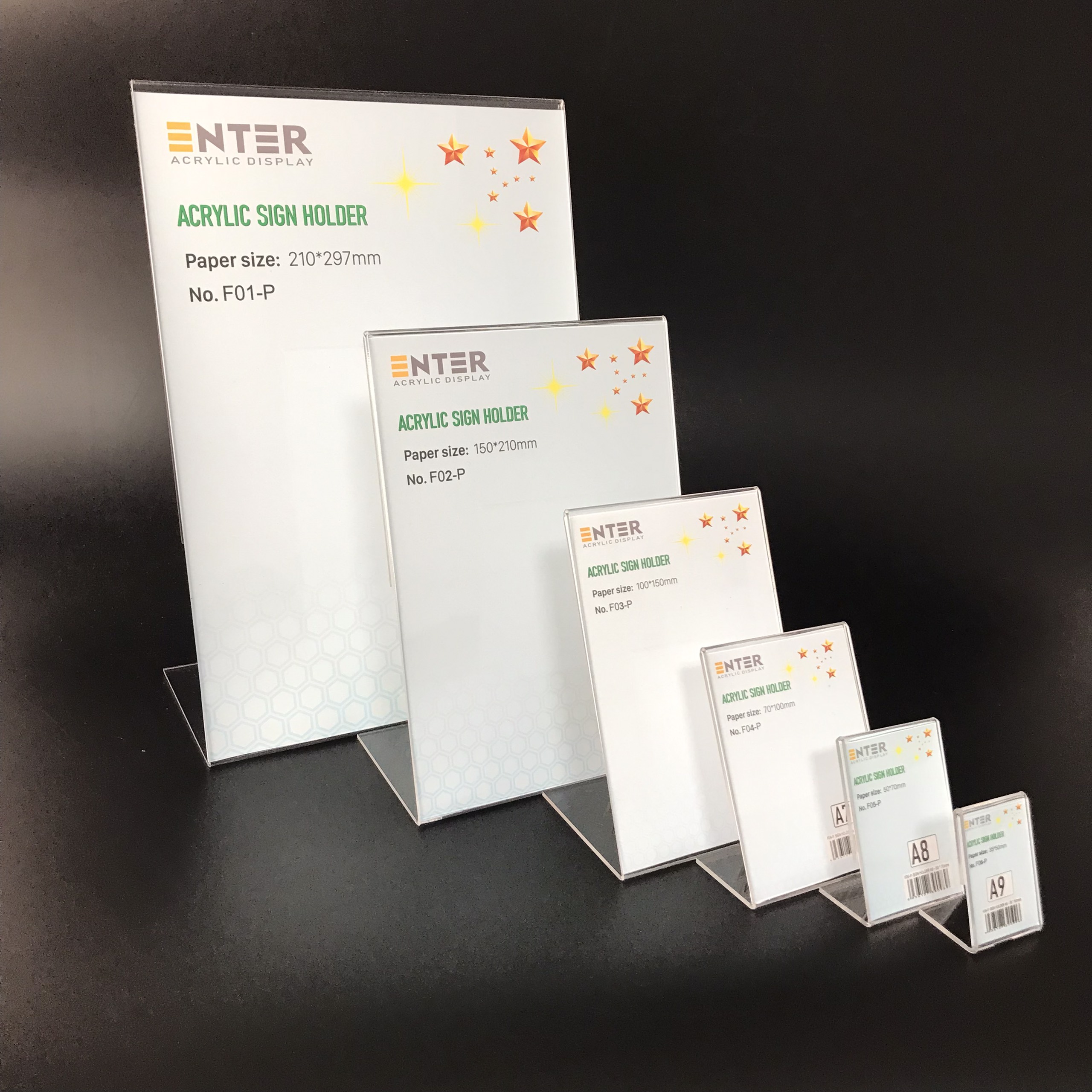 ✨Kệ mica 1 mặt Enter F05-P 50x70mm A8 đứng, Kệ menu chữ L, Khung thông tin sản phẩm, Khung bảng giá, Kệ trưng bày để bàn