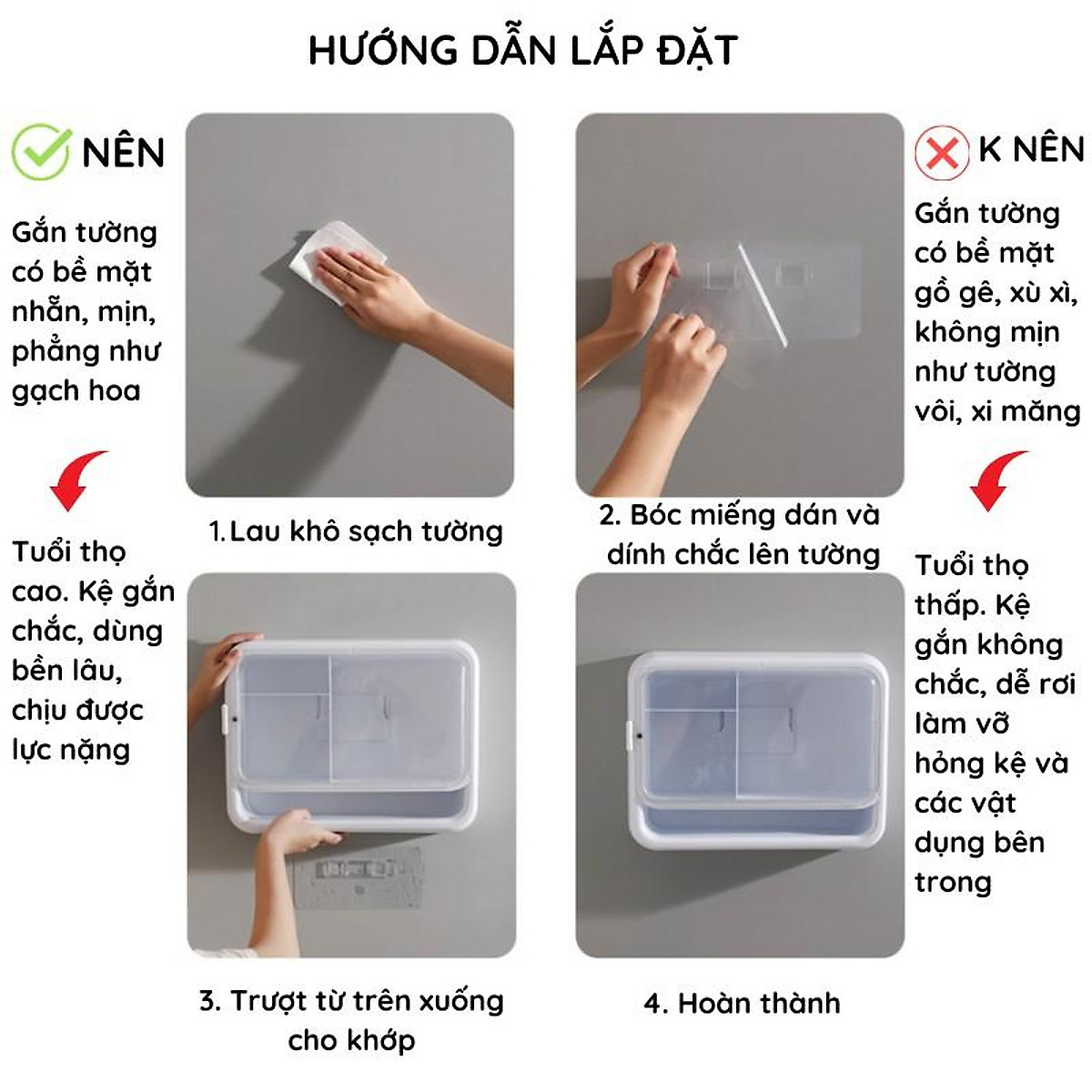Tuy treo tường không cần khoan đục lỗ nhưng TỦ ĐỰNG MỸ PHẨM TREO TƯỜNG NHÀ TẮM có thể chịu được sức nặng trên 5kg giúp bạn có thể đựng được nhiều đồ trang điểm có sức nặng hơn.