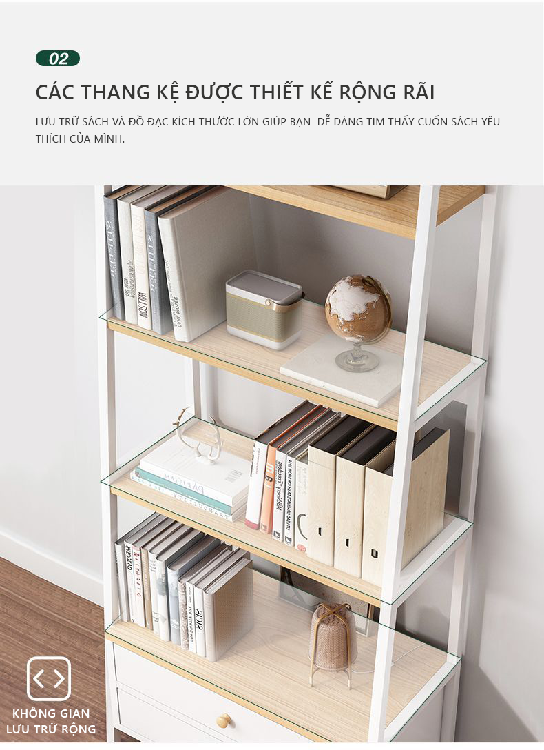 ️Kích thước: 3 ngăn: Cao x Rộng x Sâu = 80 x 60 x 24 cm 4 ngăn: Cao x Rộng x Sâu = 112 x 60 x 24 cm 5 ngăn: Cao x Rộng x Sâu = 136 x 60 x 24 cm ️Chất liệu: Gỗ Công Nghiệp (Gỗ MDF) nhập khẩu cao cấp chống xước, chống nước ️Màu sắc: Màu Trắng ️Bài trí: lắp đặt tùy vị trí mong muốn: cạnh bàn làm việc, bàn học, để đồ dùng, sách vở, tài liệu, đồ decor,