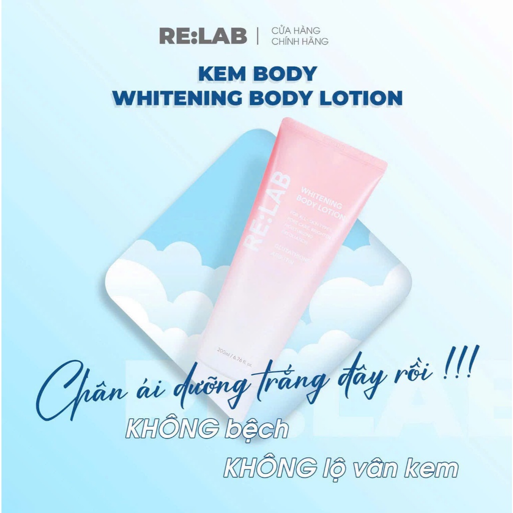 Mua tại TiktokKem dưỡng thể RE:LAB Whitening Body Lotion 200ml , Nâng tone trắng da, làm đều màu da, làm chậm lão hoá da Thông tin sản phẩm Kem dưỡng thể RE:LAB Whitening Body Lotion 200ml