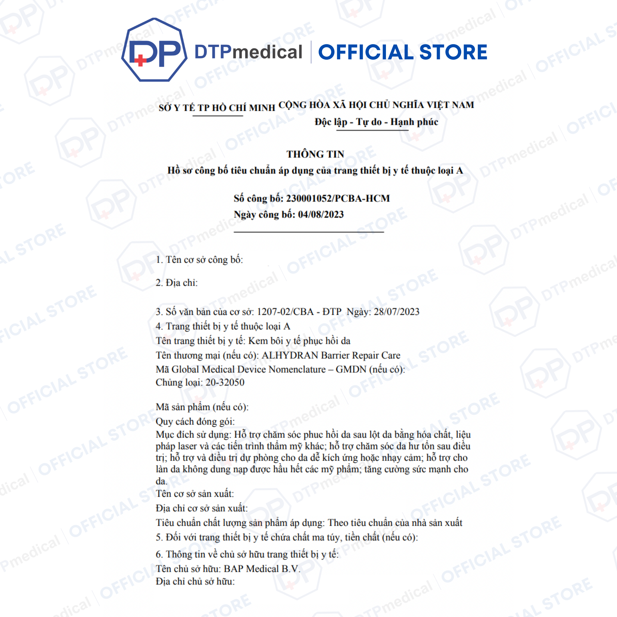 - BAP MEDICAL sử dụng công thức đã được khoa học chứng minh của ALHYDRANSPECIALCARE làm cơ sở. ALHYDRANSCPECIALCARE Barrier Repair Care là sự kết hợp các đặc tính độc đáo của gel Aloe Vera với các thành phần hiệu quả khác.