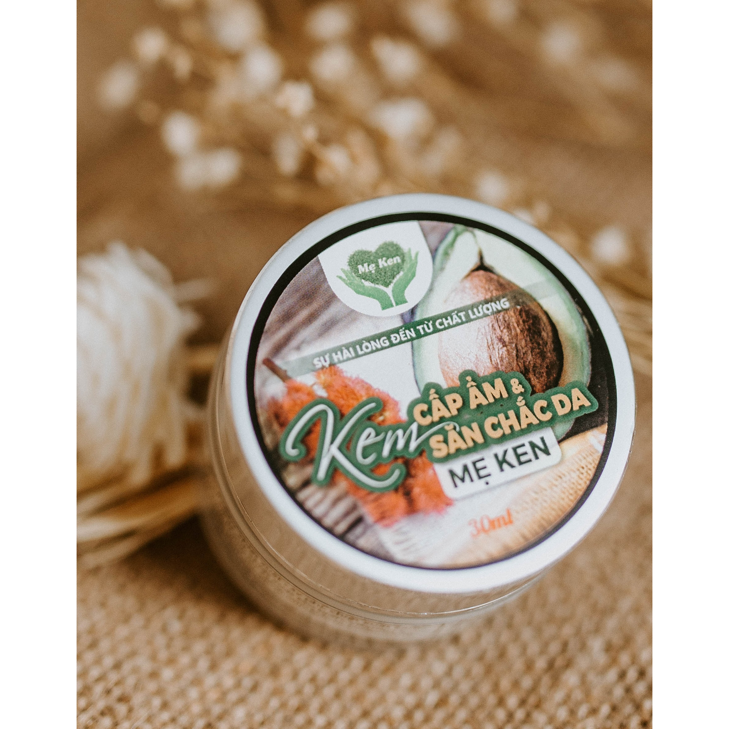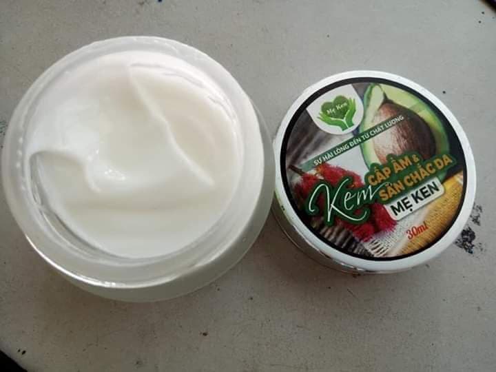 Mua tại TiktokKEM CẤP ẨM & SĂN CHẮC DA MẸ KEN (30ml) Thành phần: Bơ, dầu thầu dầu, Vitamin E, Vitamin C, chiết xuất tảo biển, hyaluronic acid, alpha arbutin, sáp nhũ hóa,… Công dụng: Cấp ẩm và làm săn chắc da, giúp da sáng, mịn hồng, ngăn ngừa lão hóa da do tác động của các tác nhân bên ngoài. Hướng dẫn sử dụng: Lấy một lượng vừa đủ, bôi 1 lớp mỏng và massage nhẹ nhàng 5 – 10 giây cho kem thẩm thấu đều lên da. Bôi 1 lần/ngày vào ban đêm trước khi đi ngủ. Bảo quản: Nơi khô ráo, thoáng mát, tránh ẩm, tránh ánh nắng chiếu trực tiếp vào sản phẩm và có nhiệt độ dưới 30 độ C HSD: 24 tháng Trọng lượng: 30ml