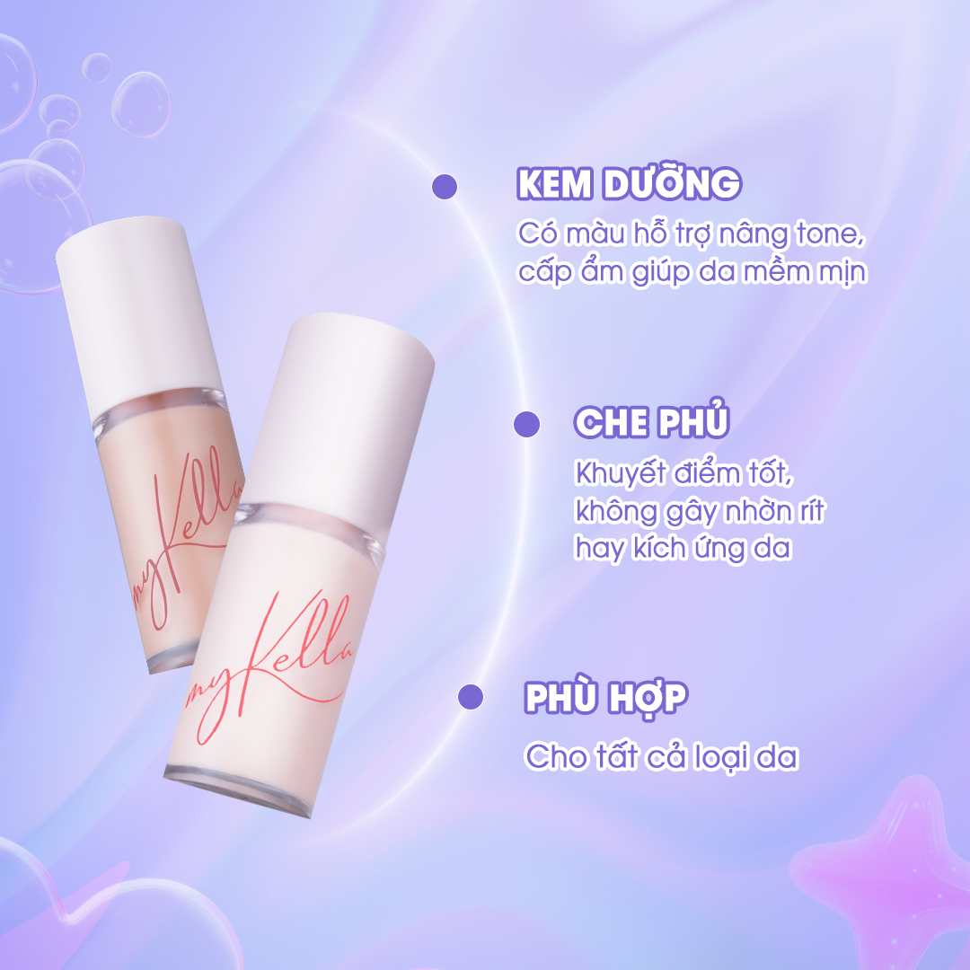 - Bước 3: Để kem thẩm thấu hoàn toàn vào da trước khi tiếp tục các bước trang điểm tiếp theo. Lưu ý: Sử dụng sản phẩm trên nền da sạch để đạt hiệu quả tối ưu. THÔNG TIN THƯƠNG HIỆU myKella là thương hiệu mỹ phẩm chuyên nghiệp được thành lập vào năm 2022, là công ty con của thương hiệu Kella với hơn 20 năm kinh nghiệm trong ngành làm đẹp tại Việt Nam. Với châm ngôn "Thương hiệu mỹ phẩm chuyên nghiệp được may đo cho phụ nữ Việt Nam", myKella chuyên cung cấp các sản phẩm trang điểm và chăm sóc da chất lượng, phù hợp với đặc điểm và nhu cầu của mọi người.