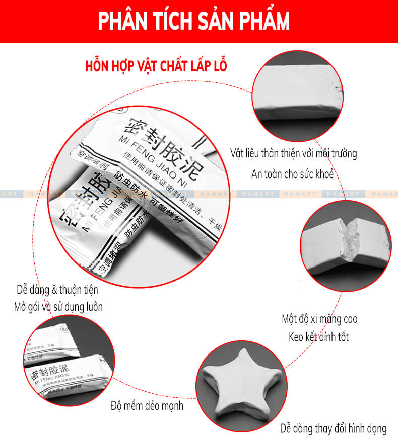 ✨Keo Đất Sét Xi Măng Dẻo Bịt Tường 160gr Vá Trám Lỗ Điều Hoà Chống Thấm Cách Nhiệt Sửa Chữa Nhà Cửa Hamart