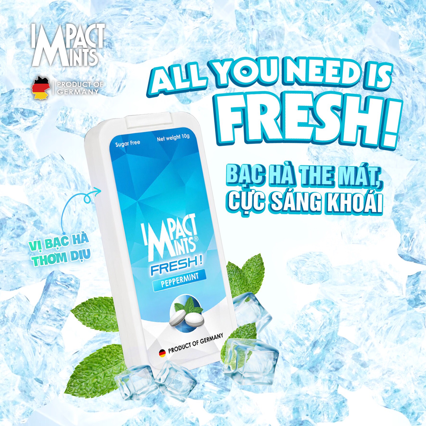 ✨Kẹo Không Đường Bạc Hà IMPACT MINTS FRESH 10g (Tặng kèm 1 gói khăn giấy tepo)