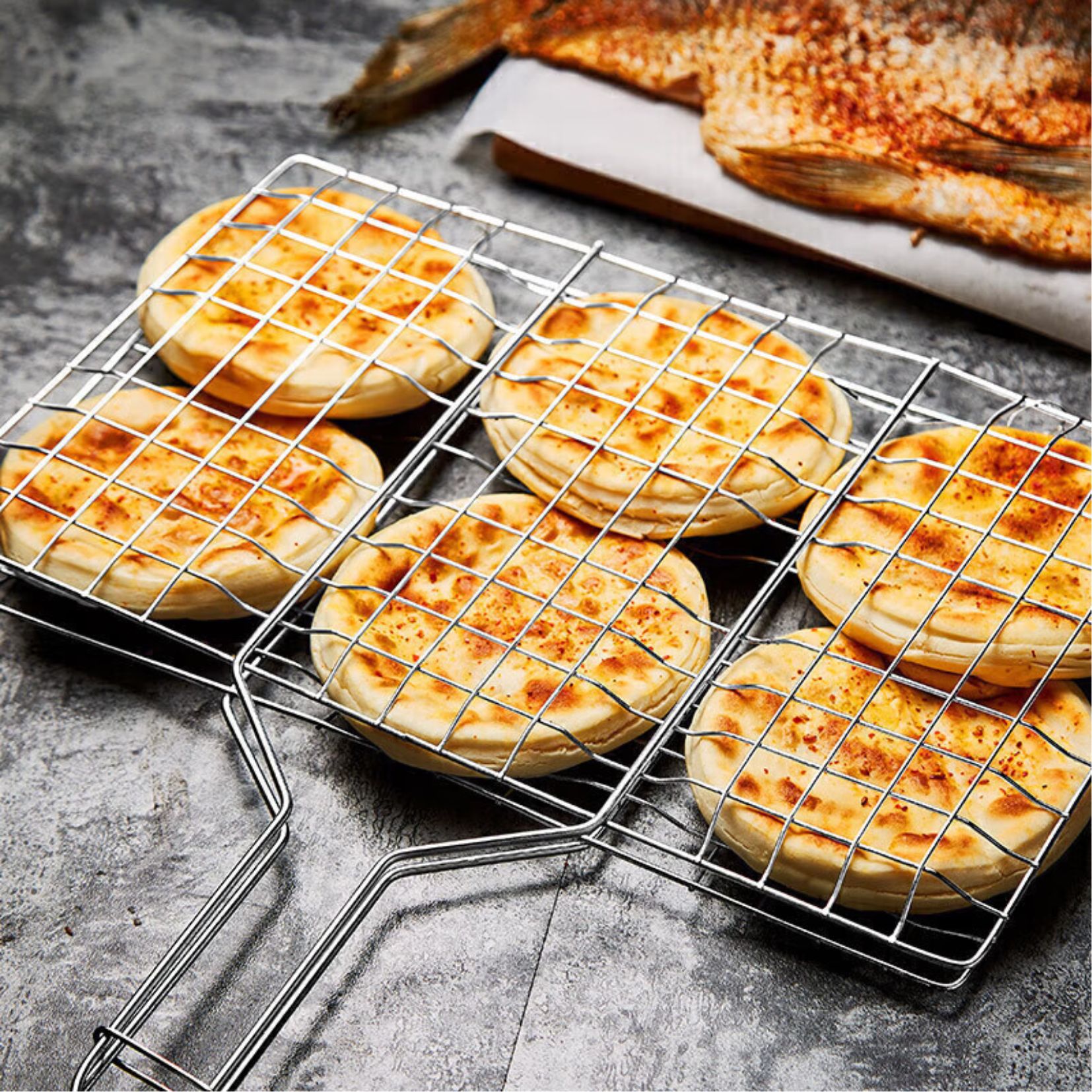 Kẹp nướng vuông có tay cầm gỗ cách nhiệt, nướng cá, kẹp nướng, lưới nướng, kẹp rau củ, nướng thịt